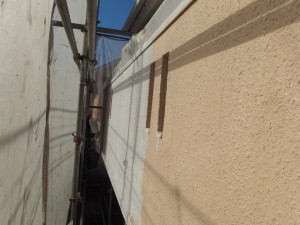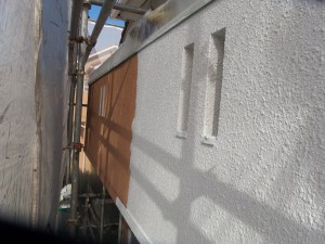 N様邸 外壁の既存が モルタルのスタッコ吹き付け模様 と言っても分からないですよね(>_<) ゴツゴツとした凹凸の多い模様の外壁です。 通常1回塗りの下塗りですが、この凹凸を滑らかにする事と、細かいひび割れをしっかりと埋めるために 下塗りを2回塗り重ねます。 1回目は白 2回目は上塗りの色に近づけた色 です。これは、弊社の職人の判断で下塗りを2度塗りしています。 もちろんN様の工事費用には下塗り1回の費用でやらせていただいています。 仕上がりと耐久性を求める為に、直接に作業をする職人の判断で、良いことは徹底してやらせて頂きます。 塗装を終えた1年後ではなく、10年先に弊社に依頼して良かったとお客様に喜んでいただく為にです(^u^)