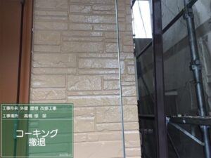 工事前はサイディングボードの目地シーリングがひび割れ、剥離をしている状況で雨水が侵入する恐れがありました。