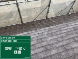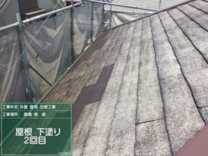 屋根は劣化が激しく、下塗りを2度塗りし下地強化後、中塗り、上塗りの4度塗りにて施工しました。